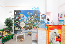 Die gemeinsam geschaffenen Werke sind in verschiedenen Stadien der Fertigstellung zu sehen, einige werden während der Ausstellung noch bearbeitet. Der Leitgedanke war mit Lust und Freude auf Augenhöhe spielerisch in einen kreativen Austausch zu treten und die übliche Präsentation von Kunst als fertiges Produkt zu hinterfragen.