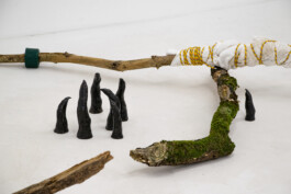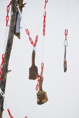 Fragile Landscapes ist ein Begriff aus der Ökologie und bezieht sich (selbsterklärend) auf Ökosysteme, die besonders anfällig sind. Hier wird der Begriff doppeldeutig verwendet: Einerseits wird die fragile Konstruktion der Installation widergespiegelt, andererseits wird durch die Benutzung gefundener Objekte, auf verschiedenen Stadien des Zerfalls angespielt. Beispielsweise totes Holz aus dem Wald, welches normalerweise durch natürliche Prozesse, durch Erde und Pilze zersetzt werden würde oder Müll, von Menschen produziert, der aus dem Entsorgungskreislauf entfernt wurde. Die Trennung dieser Kreisläufe ist jedoch nur oberflächlich möglich. Letztendlich sind Menschen und Natur untrennbar vereint und Teil des gleichen Systems.