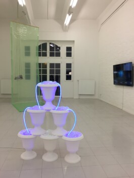 Die Installation "The Biology of Synthetic Plants in the Time of Earthquakes" von Lisa Kottkamp bezieht sich auf (Lebens-)Raumkonzepte, die sich in einem permanenten Wandel befinden. Insbesondere auf solche, die maßgeblich durch Digitalisierungsprozesse beeinflusst werden. Dazu gehört auch unser sich durch derartige Prozesse wandelndes Verhältnis zur Natur. Gegenwärtig ist es vorrangig Bruno Latour, der sogar so weit geht, zu behaupten, dass sich der Naturbegriff vollständig „aus dem Staub“ gemacht habe. Alles sei nunmehr „postnatürlich“. In Anlehnung an Latours Überlegungen zeigen Lisa Kottkamps Arbeiten einen punktuellen Ausschnitt aus jenem „postnatürlichen“ Zeitalter, das für Latour ein Spezifikum unserer Gegenwart und Zukunft ist.