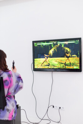 Agata Konarskas "Thronus Gratiae" ist eine interaktive virtuelle Erfahrung, welche in ihrer Form auf Labyrinthe und Fighting-Games für Konsolen zurückgreifen. Die Teilnehmer*innen bewegen sich durch ein virtuelles Labyrinth, in dem sie mystische Kreaturen treffen, die ihre eigene Entstehung und die der Anderen absorbieren und sich in unserem Unterbewusstsein materialisieren. Am Ende des Spiels, wird man Teil der unendlichen Fehde zwischen Priester der Auslöschung und dem Anti-Mensch. Der Körper der Kämpfer*innen werden mit AI Tattoos bedeckt, welche als Trophäen oder Zeichen der Heilung verstanden werden können. Die Tätowierungen zeigen Tiere, welche eine signifikante Rolle im hegemonialen Spektakel des menschlichen Wahnsinns gespielt haben. Die Erzählung zum Geschehen kommt, in Form eines Gebetes, während des gesamten Spiels aus dem Mund von St. Margaret und St. Agata. Die Erzählung kreiert einen auditiven Hintergrund für die Virtual Reality. Die Arbeit spricht Themen wie Biodiversität und die expansive Beziehung zwischen Mensch und Natur an.
