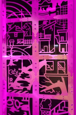 While Bosch and Brueghel used traditional materials to depict their visions of paradise, Raczyńska relies on the transformative potential of technology. Stained glass windows in cathedrals have a centuries-old heritage with their intricate craftsmanship. But to accommodate the modern ethos, Raczyńska employs modern techniques such as laser cutting and materials like Plexiglas and aluminum. This nuanced shift captures the essence of her exploration – how the tools and materials of our time shape interpretations of paradise and its intricate shadings.